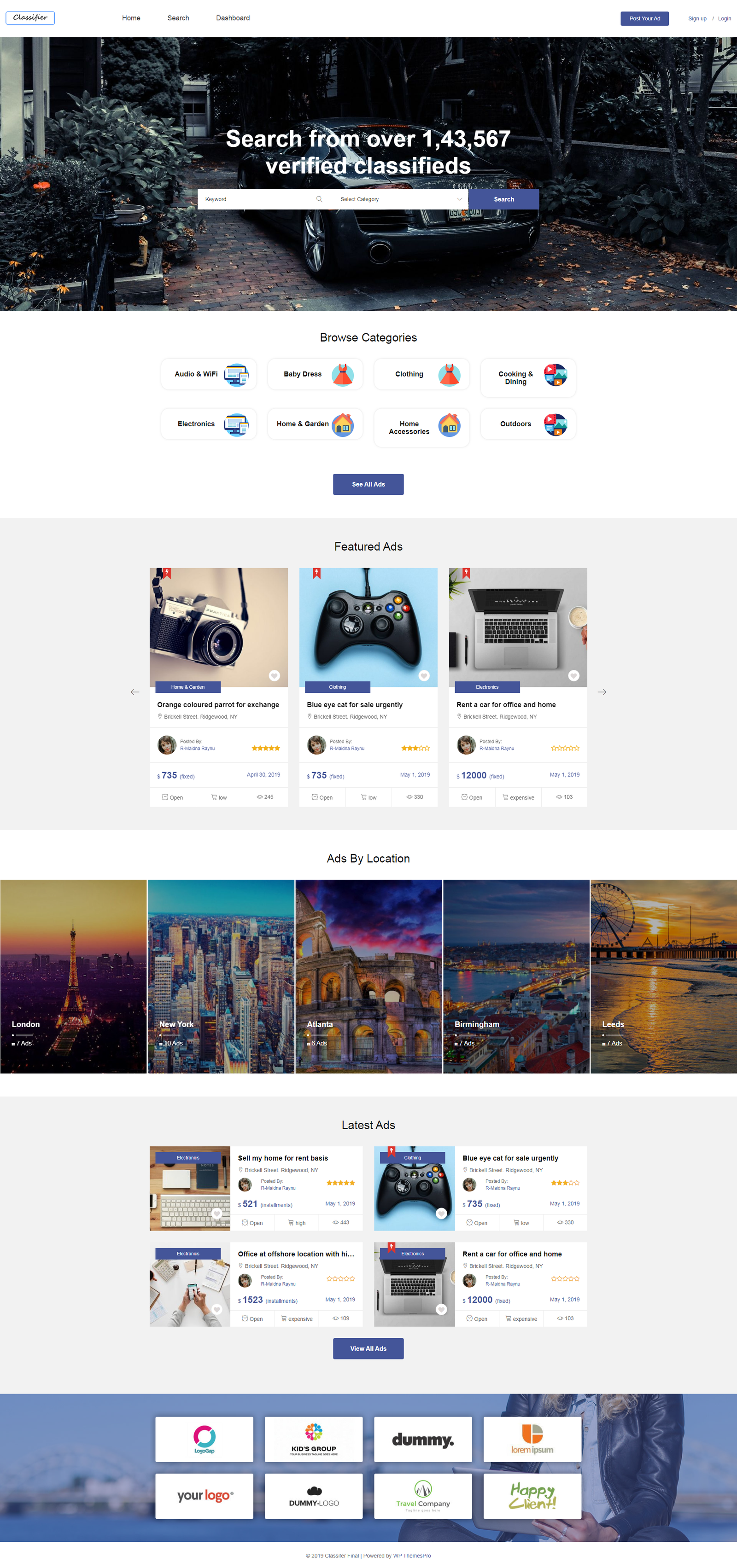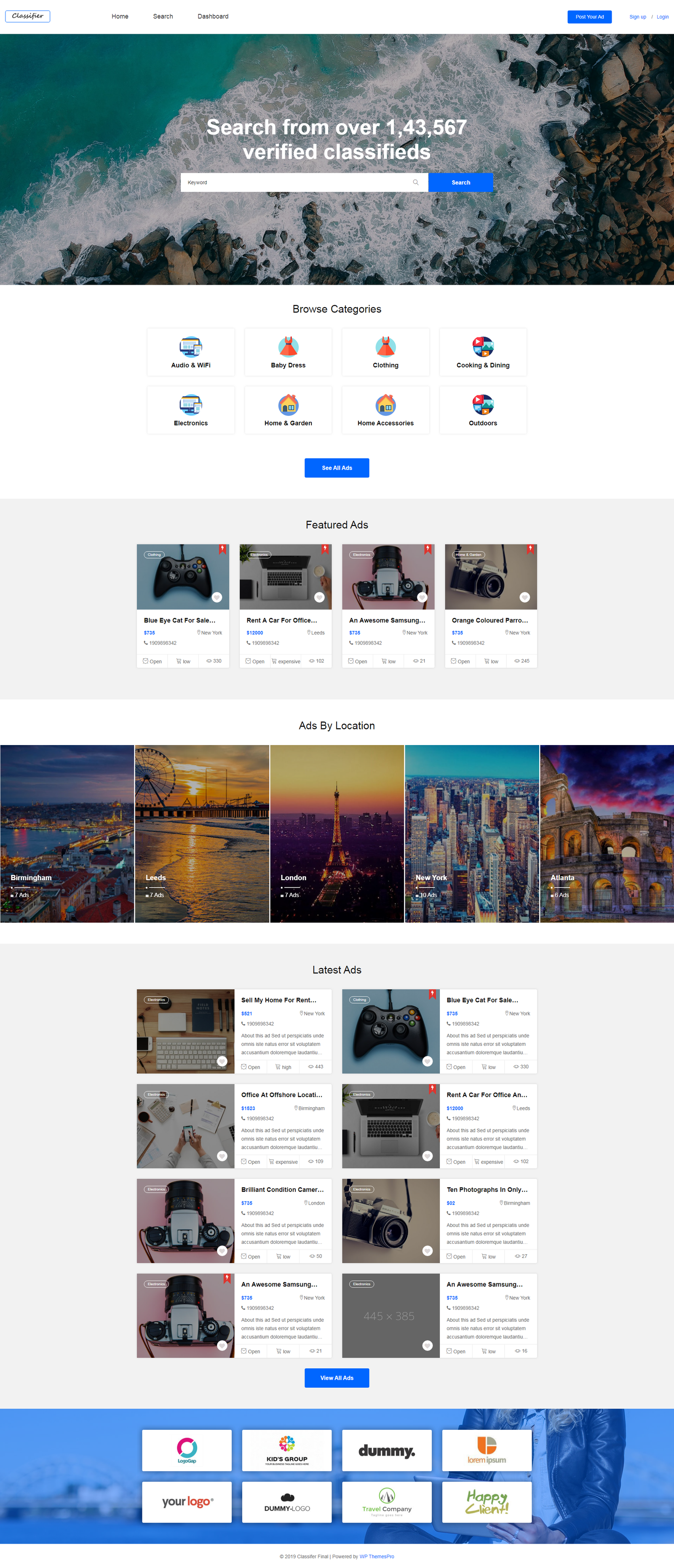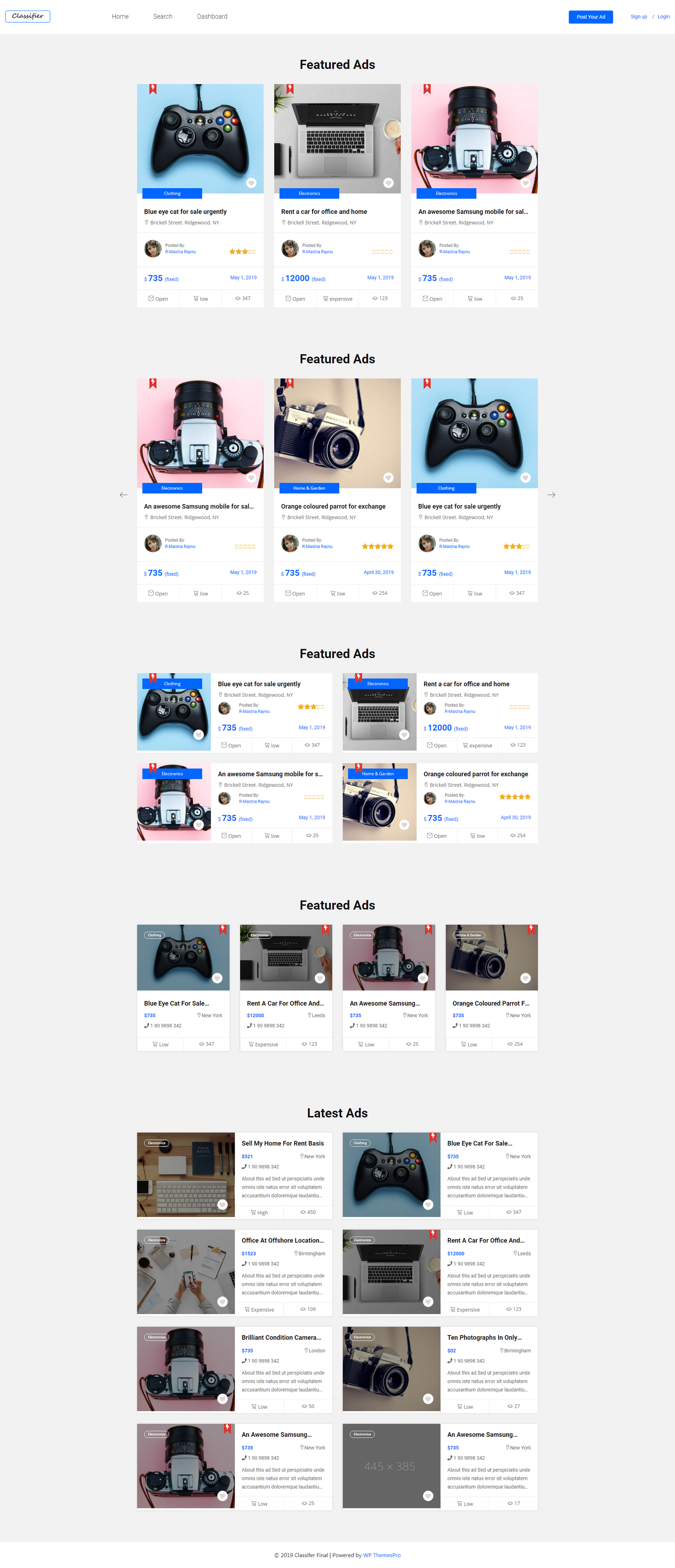 Currently Classifier comes with ready to go 5 totally different home page layouts.