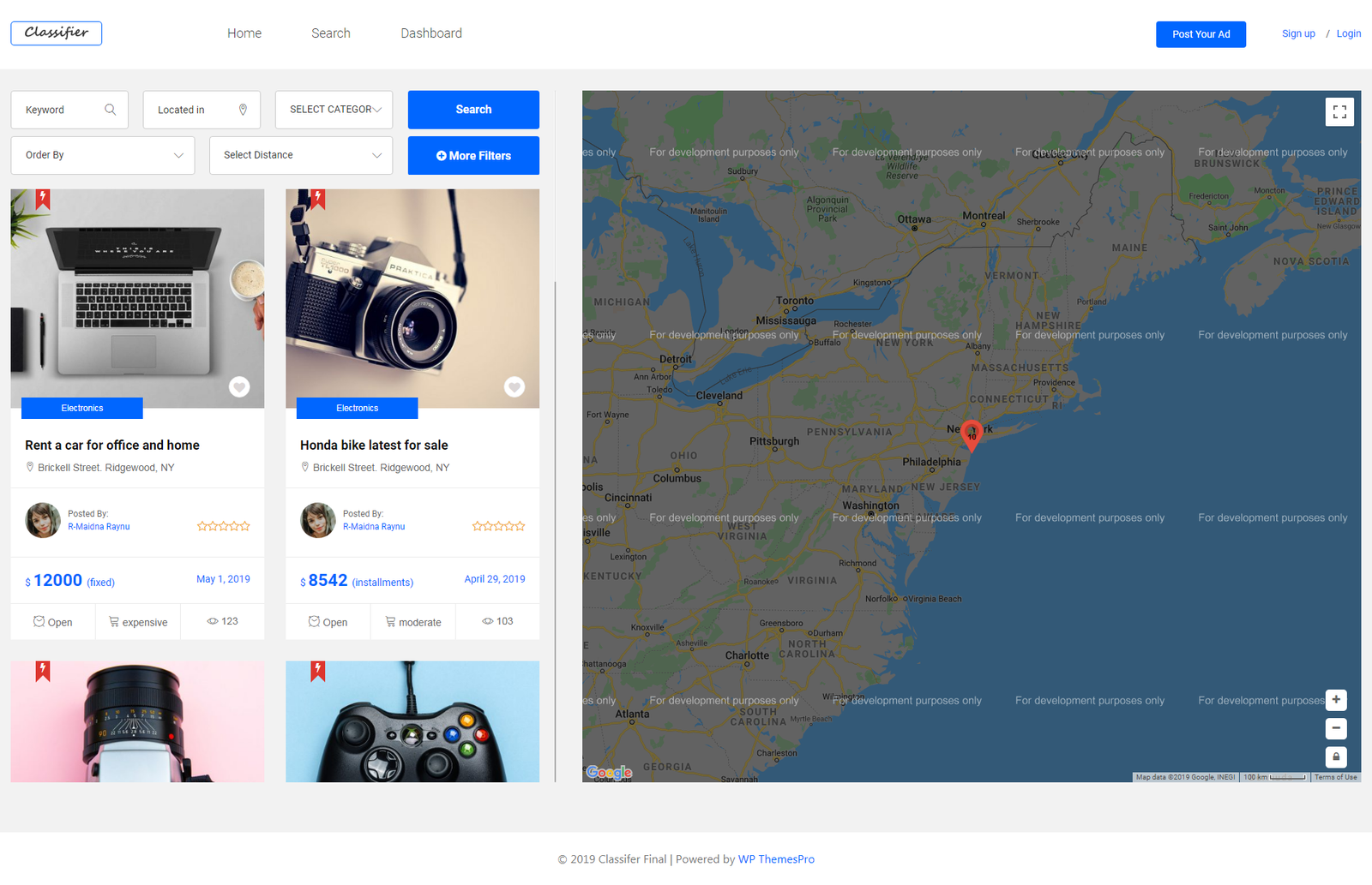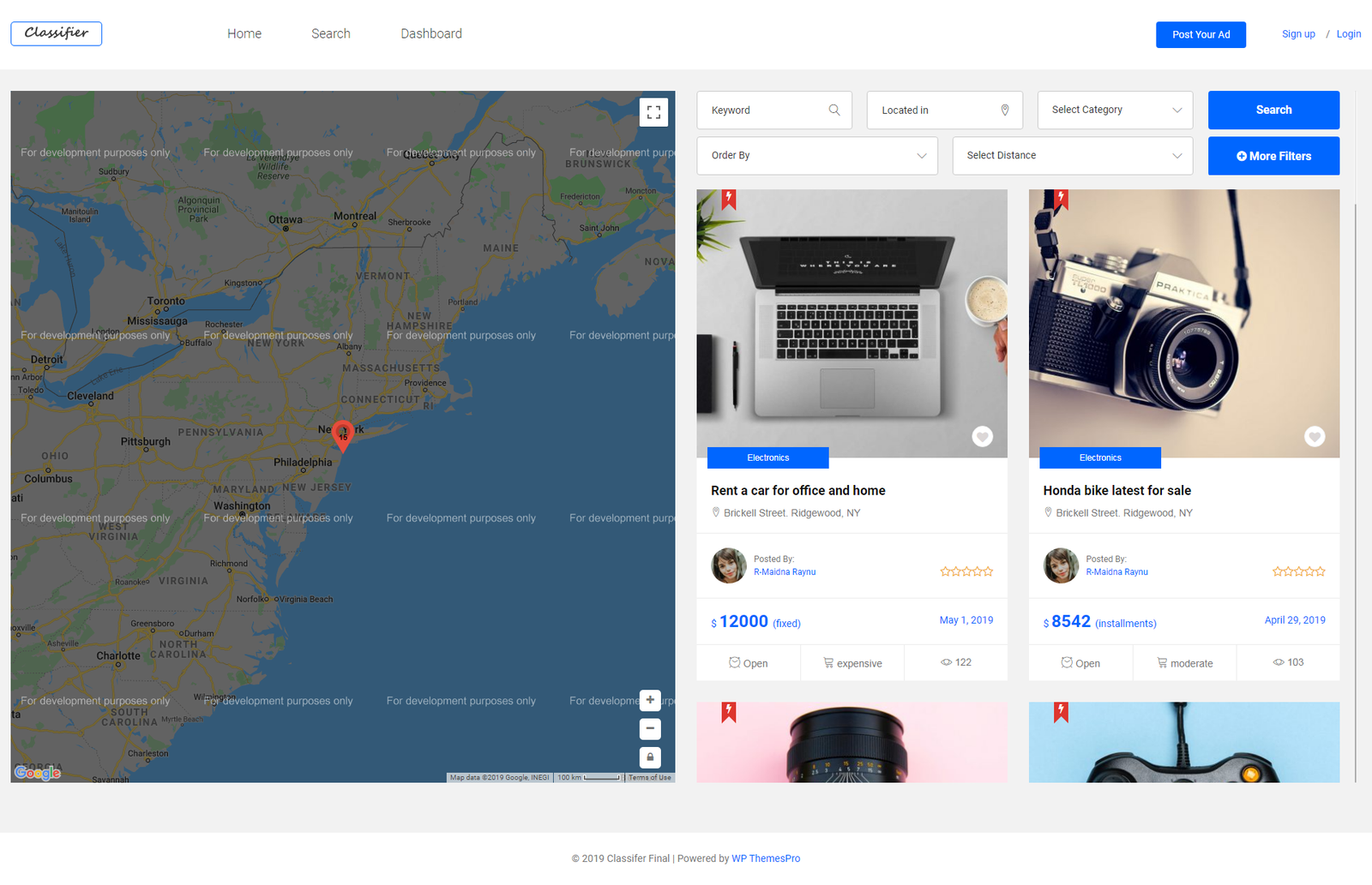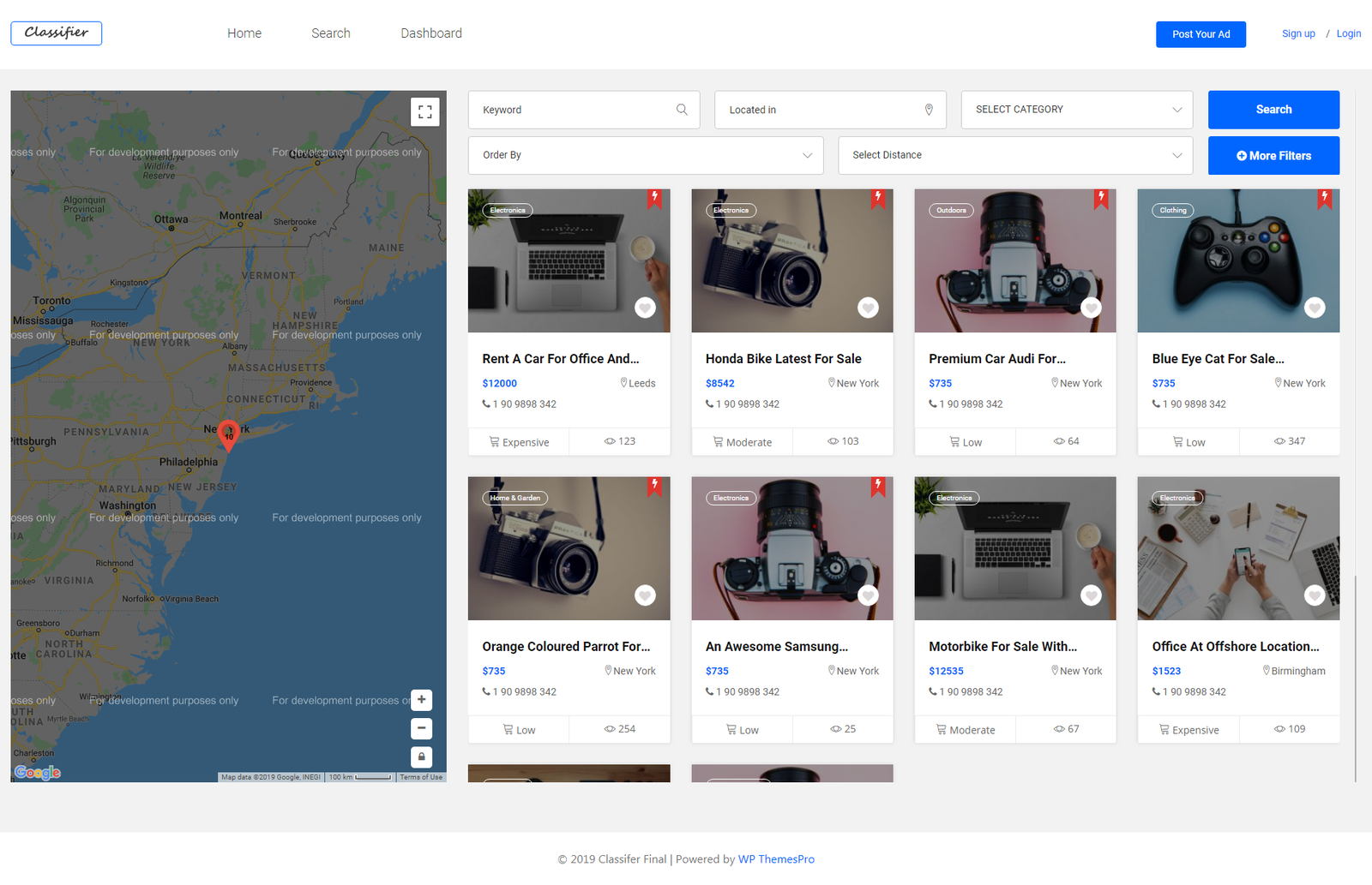 We are glad to announce that classifier is coming with ready to go 5 totally different home page demos and we are adding new ones as well. [7 search page layouts as well]