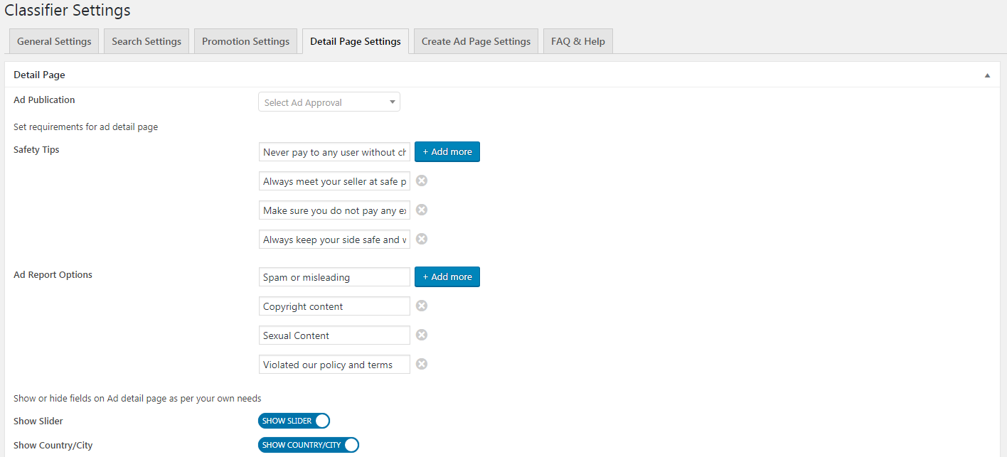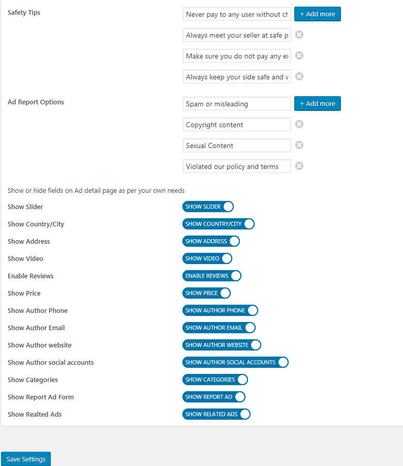 Now admin can set option to auto approve ads or manually approve any new ad posted or edited.